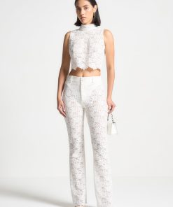 Our Lace Fit & Flare Trousers are the perfect blend of style and comfort. Featuring a flattering fit and sheer design, you’ll love the way you look while staying comfortable all day long. Flaunt your feminine charm with these sophisticated trousers.