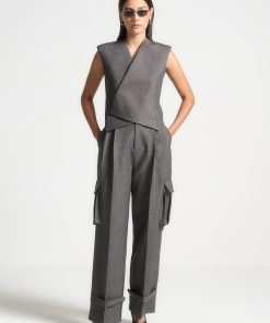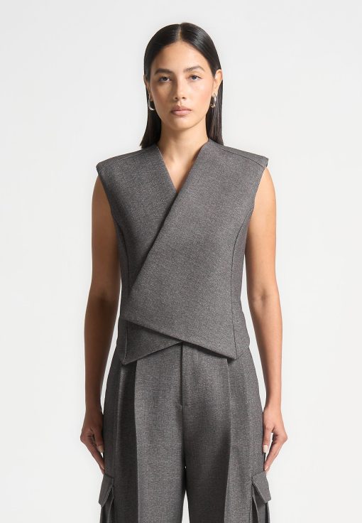 This waistcoat features a wrap silhouette with concealed buttons for a tailored, sleek look. Perfect for office-wear or special occasions, this Tailored Wrap Waistcoat pairs well with any outfit to add a tailored touch.