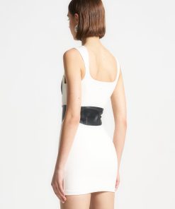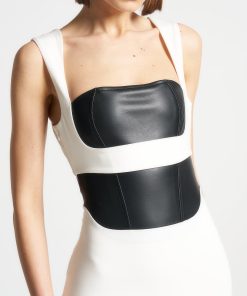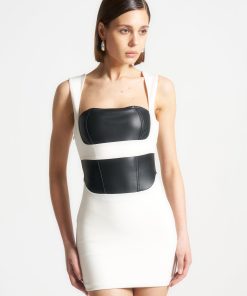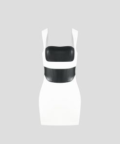 Featuring a layered corset design with quality fabrics, this mini dress offers a flattering silhouette. The curved strap detailing at the neckline adds a touch of elegance to this classic piece. Expertly crafted and designed for comfort and style. Perfect for any occasion.