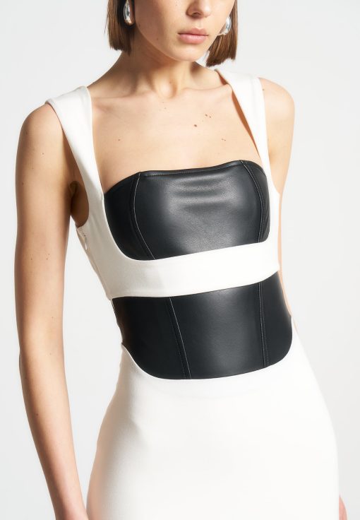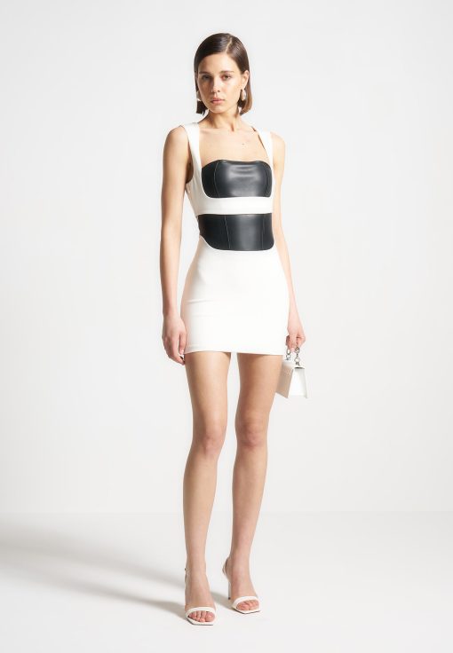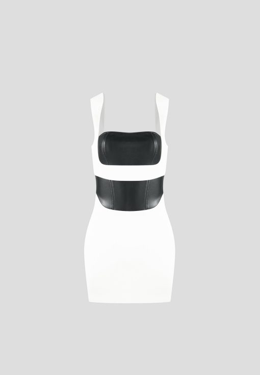 Featuring a layered corset design with quality fabrics, this mini dress offers a flattering silhouette. The curved strap detailing at the neckline adds a touch of elegance to this classic piece. Expertly crafted and designed for comfort and style. Perfect for any occasion.