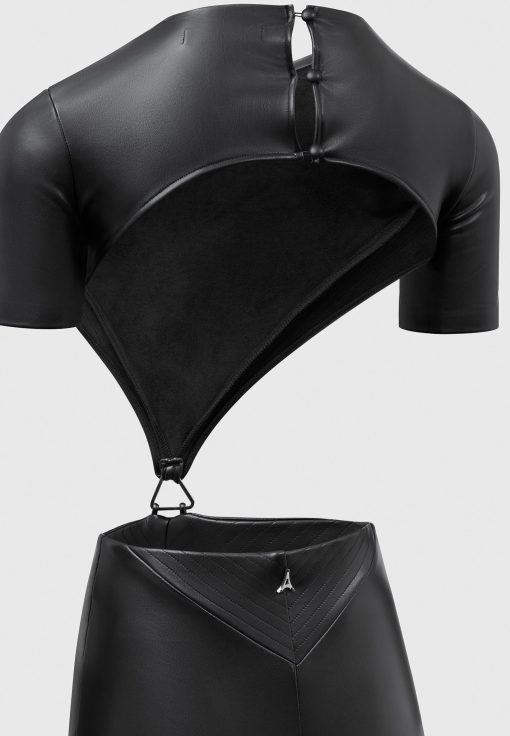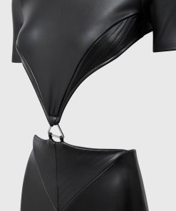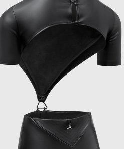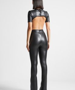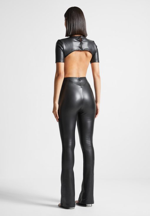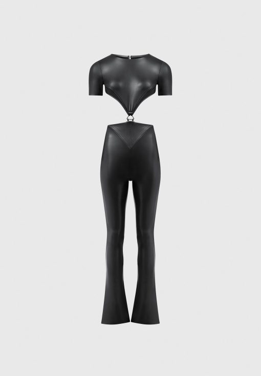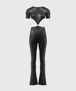 This stylish vegan leather jumpsuit is the perfect addition to your wardrobe. With a classic black hue and figure flattering design, it will be the go-to piece for any night out. Made from 100% vegan-friendly materials, you’ll have an eco-friendly look that is sure to make a statement.