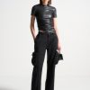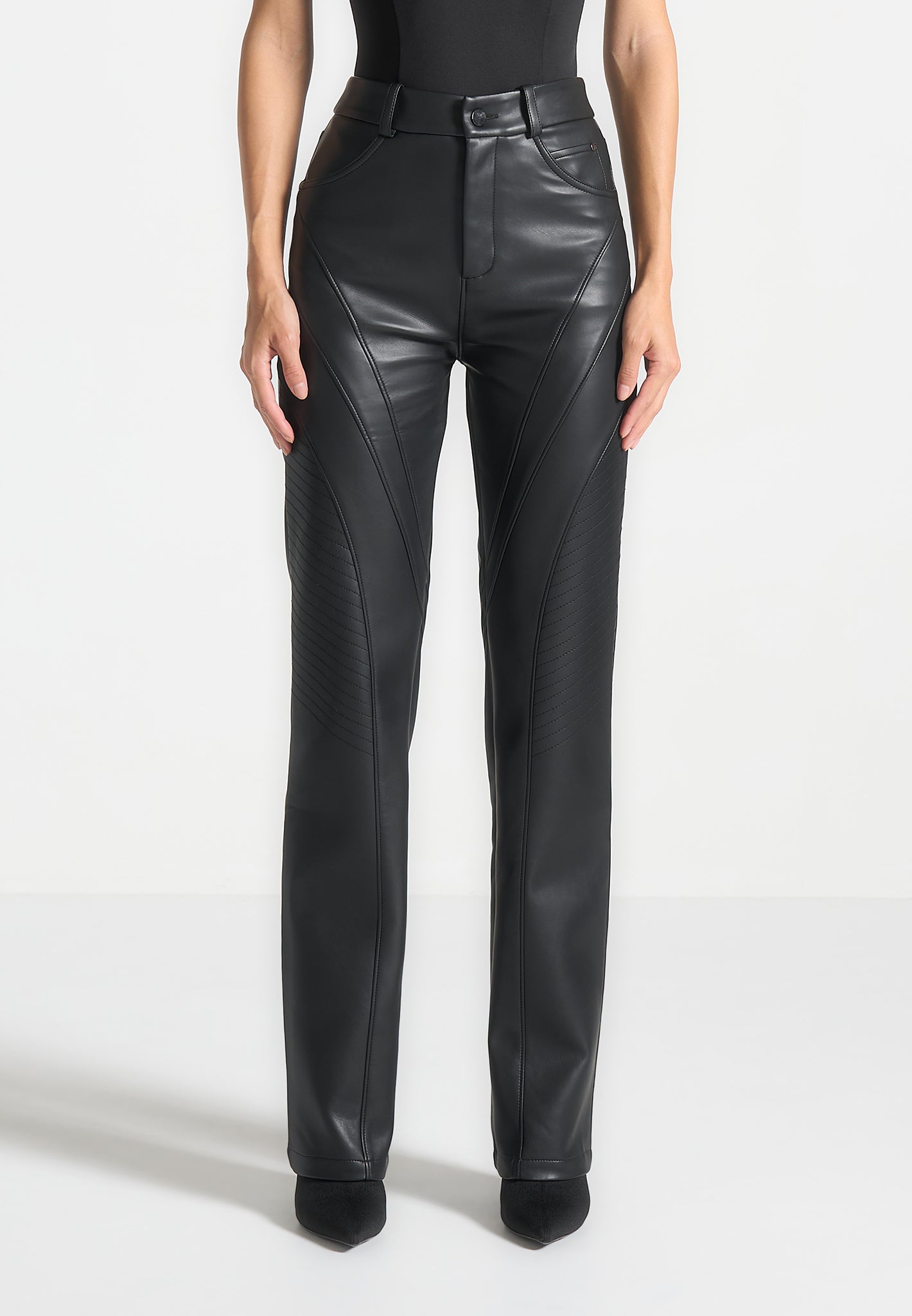These high-waisted trousers offer a sleek and sophisticated look, perfect for any occasion. The straight leg design provides a flattering silhouette, while the high waist offers comfort and support.