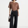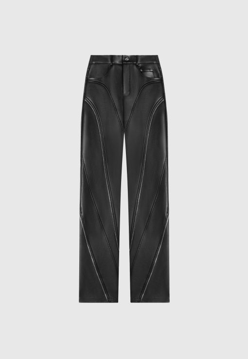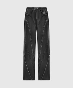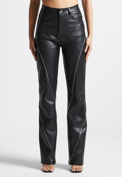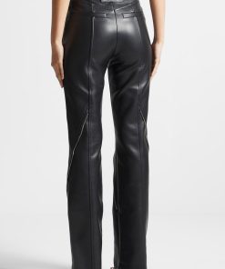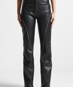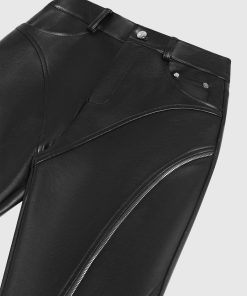 Manière De Voir Women’s Leather Biker Trousers With Zip – Black