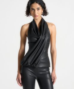 Expertly designed with a draped neckline, this lightweight halter neck top is both figure-flattering and unique. The perfect addition to your wardrobe, this top will make you feel confident and sophisticated.