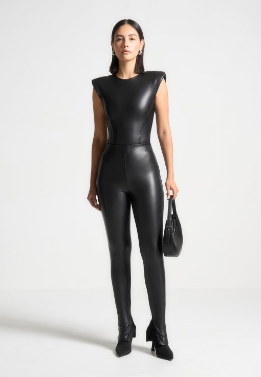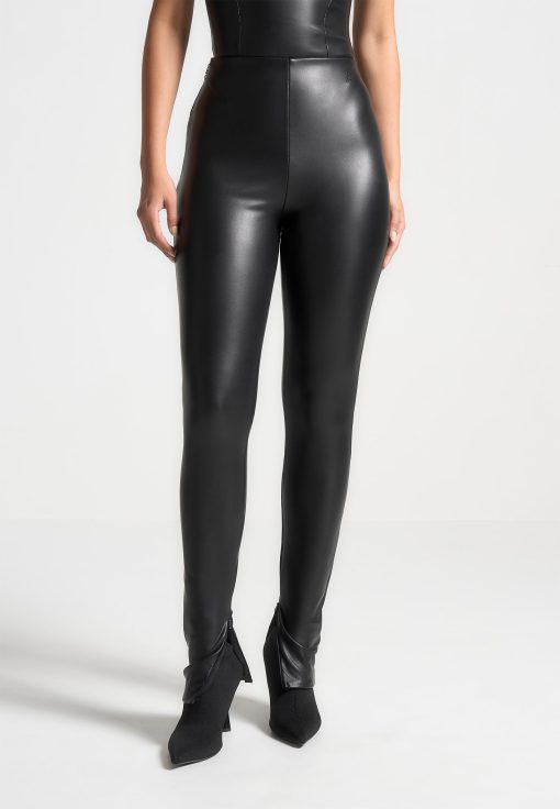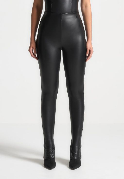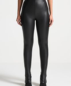 Enhance your silhouette with our Vegan Leather Leggings. Made from figure-flattering material, these leggings offer both fashion and function. The matte finish adds a touch of modernity to any look, making these a must-have staple for your wardrobe.