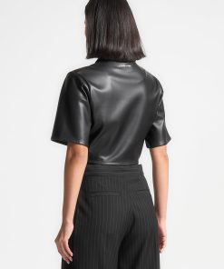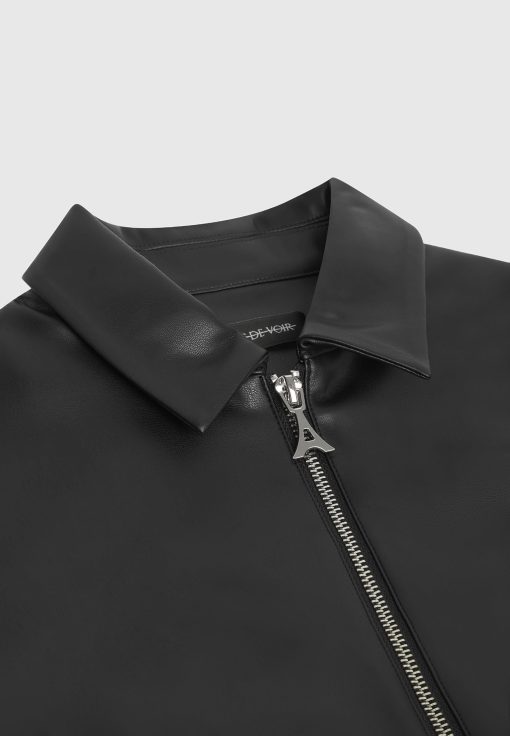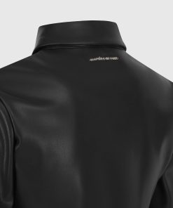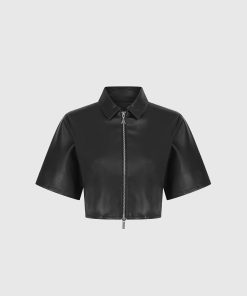 Our Cropped Leather Shirt in black is crafted with a loose fit and soft fabric and features a double zip for optimal comfort. Its unique design offers a stylish and fashionable look that can be dressed up or down.