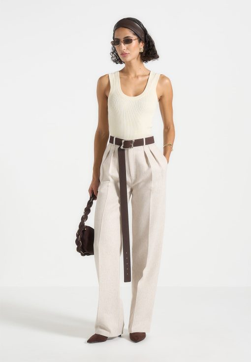 A wardrobe essential redefined with premium craftsmanship, this ribbed tank top offers a sleek, sculpted silhouette. Designed with a close fit and wide binding at the neckline and armholes, it’s crafted from 100% cotton for both comfort and structure. The vertical ribbing enhances the form while adding subtle texture.