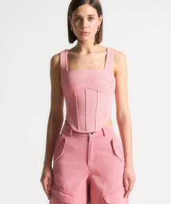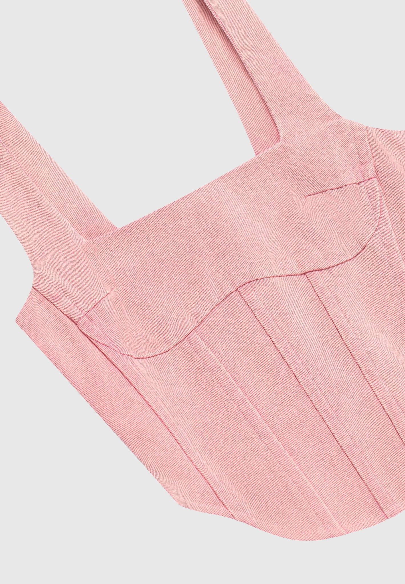 This Denim Corset Top in Washed Pink is designed to flatter your figure with its bust panel feature and internal boning. The dipped hem adds a unique touch while highlighting your curves. The ultimate combination of style and fit. Please note that the wash for this style may vary.
