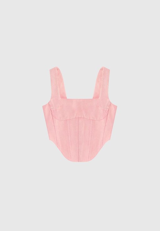 This Denim Corset Top in Washed Pink is designed to flatter your figure with its bust panel feature and internal boning. The dipped hem adds a unique touch while highlighting your curves. The ultimate combination of style and fit. Please note that the wash for this style may vary.