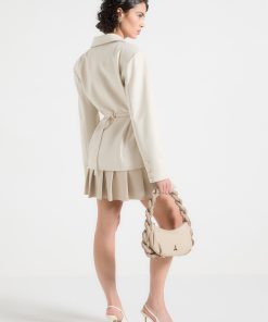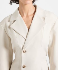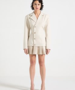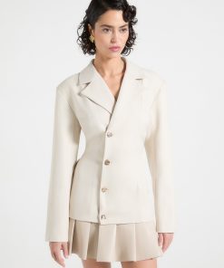 - The blazer dress silhouette combined with firm padding provide a refined, tailored structure