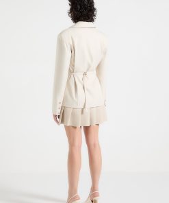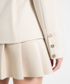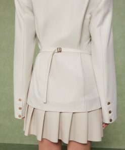 The Tailored Cinch Blazer Dress seamlessly combines sophistication with contemporary flair. Featuring a distinctive blend of contrasting leather and tailored fabric, it offers a flattering fit with a self-fabric adjuster. Finished with feature buttons, this dress makes a bold statement with its refined, yet modern design.