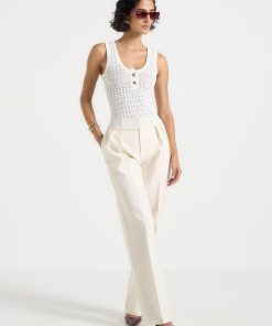 Manière De Voir Women’s Nora – Pointelle Knitted Vest With Knot Button – Cream | Cream