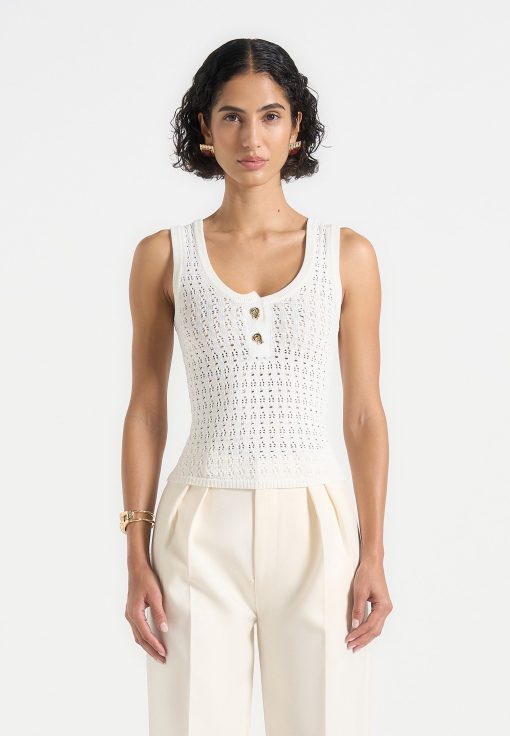 Manière De Voir Women’s Nora – Pointelle Knitted Vest With Knot Button – Cream | Cream