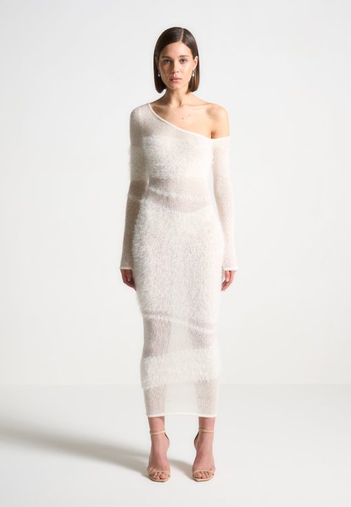 This Off Shoulder Knitted Maxi Dress is crafted from a soft and comfortable material that hugs your curves, creating a flattering fit. Perfect for any occasion, this versatile dress is sure to impress.