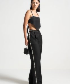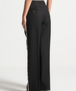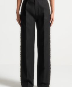 Expertly tailored for a perfect fit, these white trousers feature glamorous detailing and a sharp crease down the front leg for a sophisticated look. Elevate your wardrobe with these elegant trousers that offer comfort and style in equal measure.
