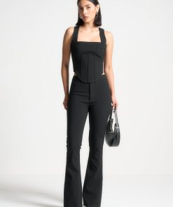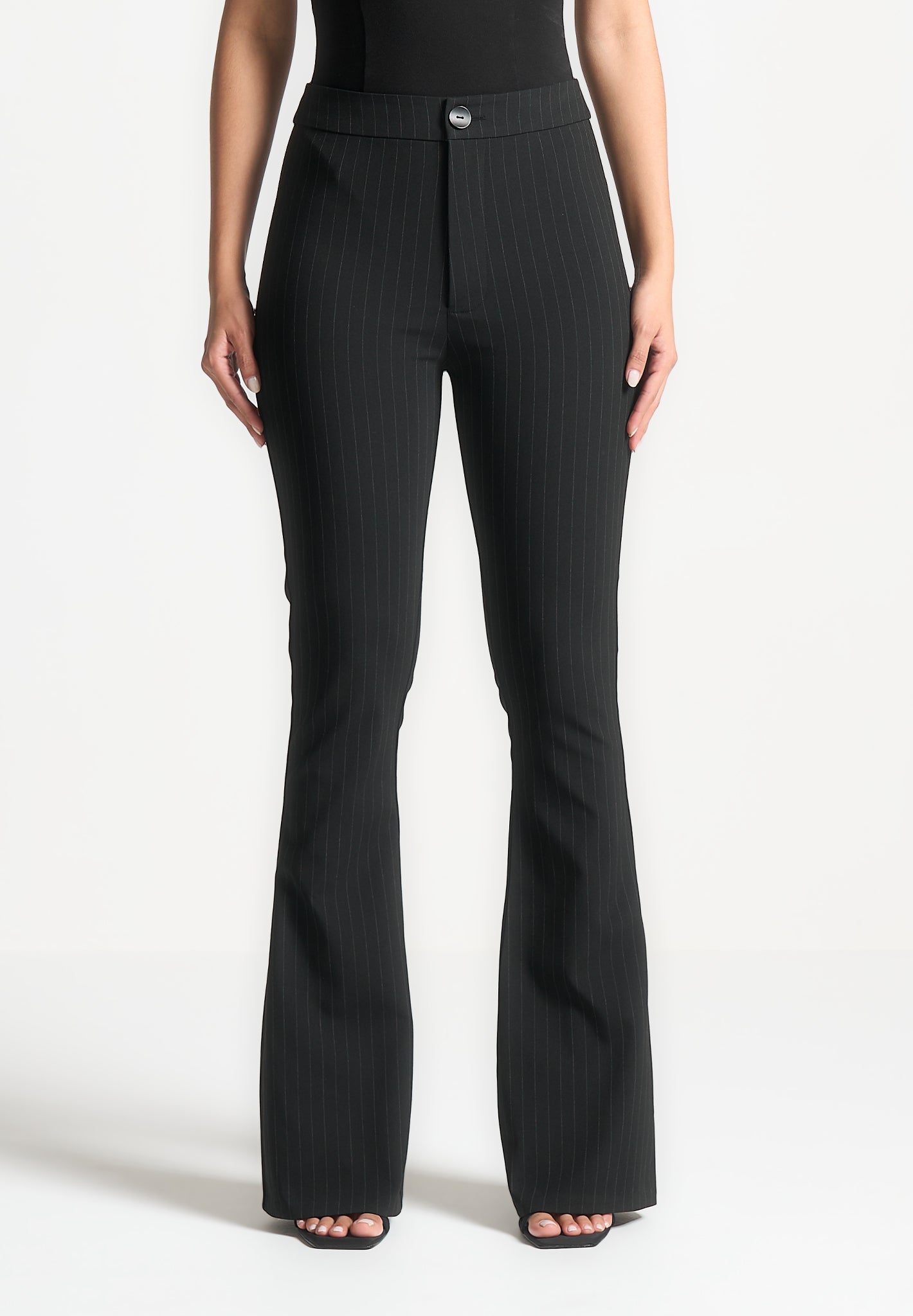These Pinstripe Fit and Flare Leggings in Black offer a flattering and stylish silhouette. The subtle pinstripe design adds a touch of sophistication, making them perfect for both casual and professional settings