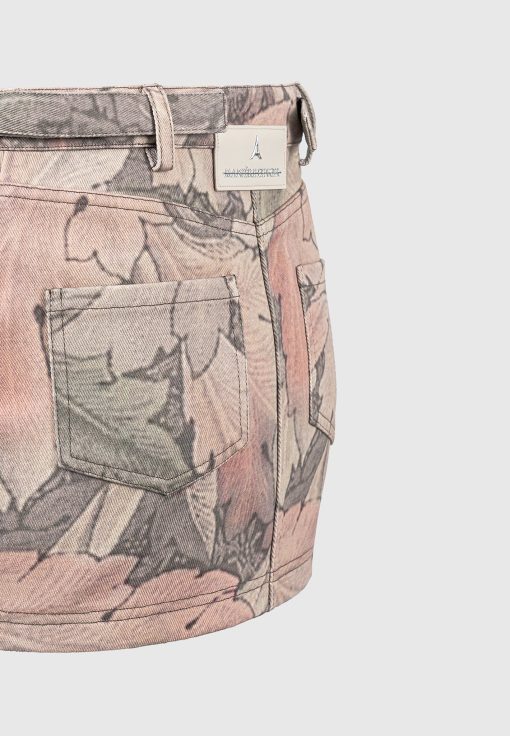 The Renaissance Camo Mini Skirt in a striking multi-color print is both stylish and functional. Featuring waistband adjusters for the perfect fit and a utility design, this skirt is perfect for those looking to make a statement. Elevate your wardrobe with this unique piece.