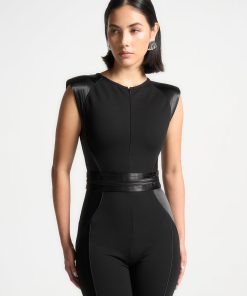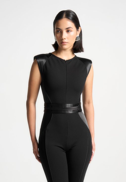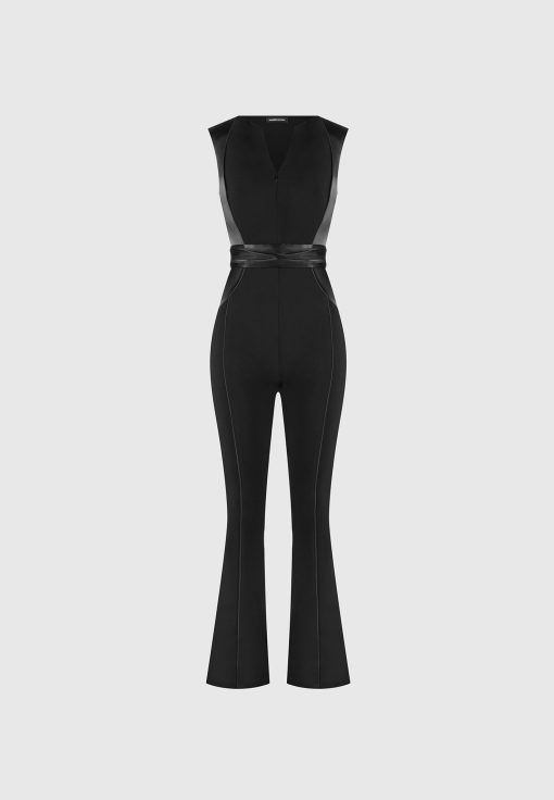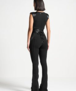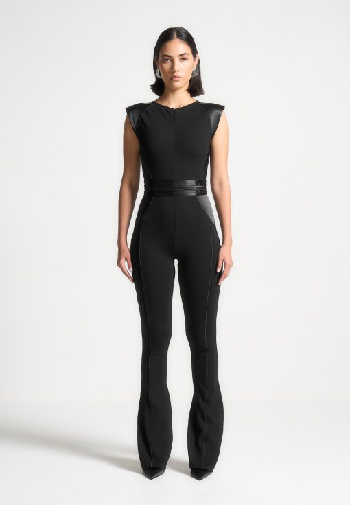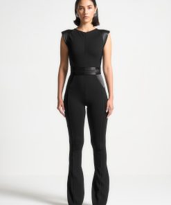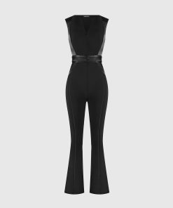 Manière De Voir Women’s Satin Contour Flared Jumpsuit – Black