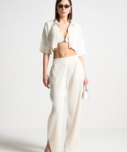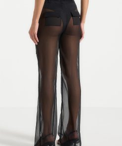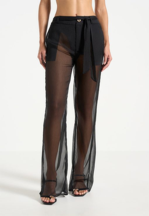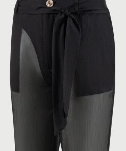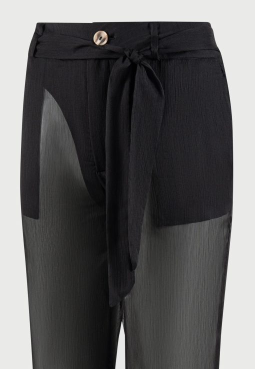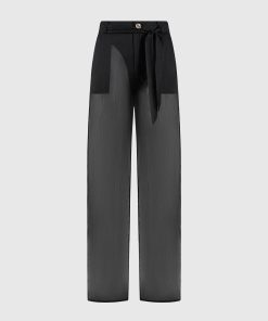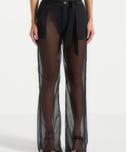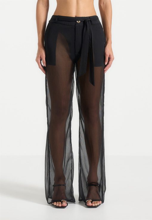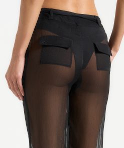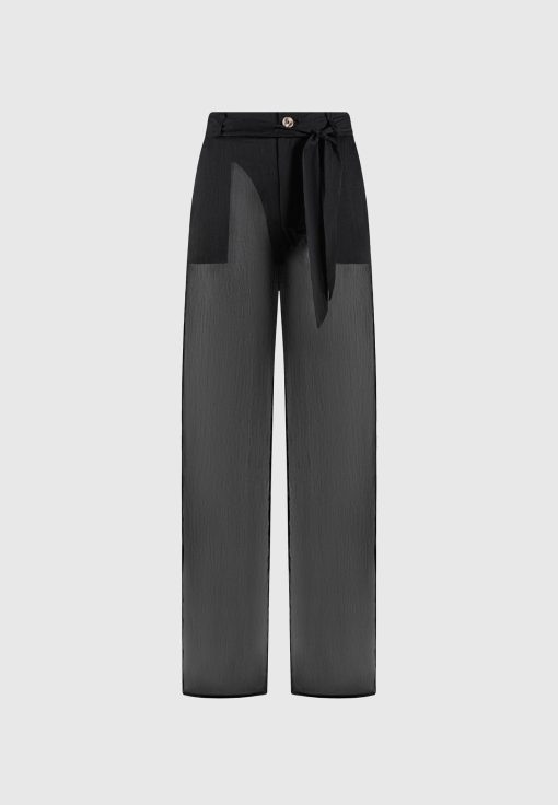 These sheer trousers are perfect for a sophisticated and elegant look. The lightweight fabric offers comfort and breathability, while the detachable belt adds versatility. Featuring an internal knicker, these trousers provide both coverage and style.