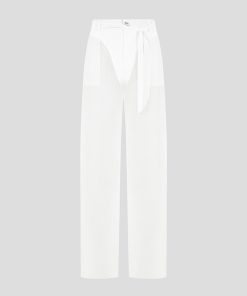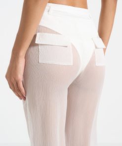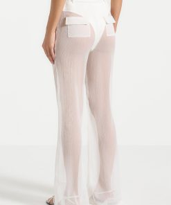 These sheer trousers are perfect for a sophisticated and elegant look. The lightweight fabric offers comfort and breathability, while the detachable belt adds versatility. Featuring an internal knicker, these trousers provide both coverage and style.