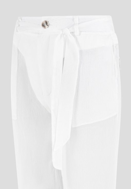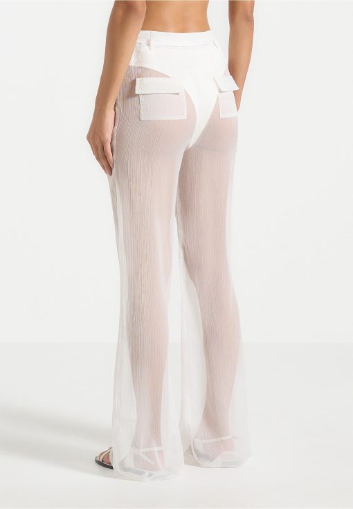 These sheer trousers are perfect for a sophisticated and elegant look. The lightweight fabric offers comfort and breathability, while the detachable belt adds versatility. Featuring an internal knicker, these trousers provide both coverage and style.