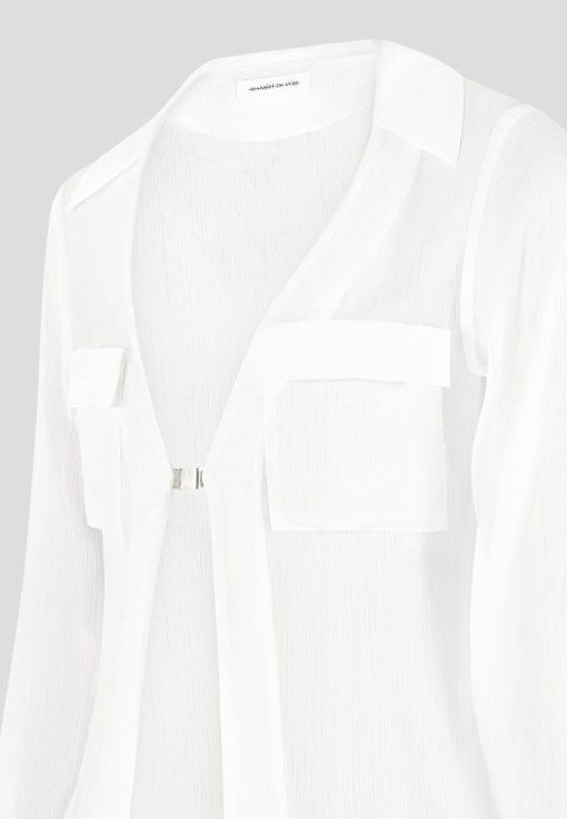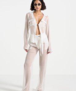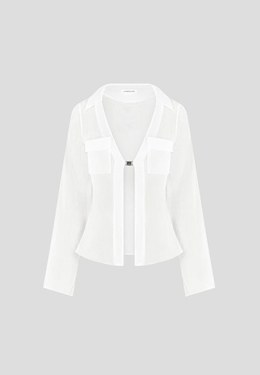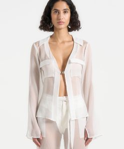 Expertly crafted from lightweight fabric, this sheer shirt is an essential addition to any wardrobe. The elegant Eiffel clasp front closure adds a touch of sophistication to this piece, perfect for day or night. Enjoy the breathable comfort and effortless style of this timeless shirt.