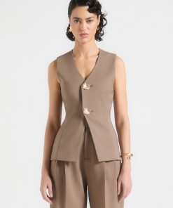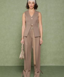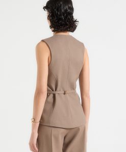 Manière De Voir Women’s Simone – Cinch Waistcoat With Oversized Buttons – Taupe | Taupe