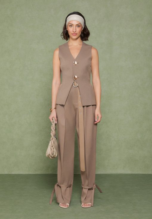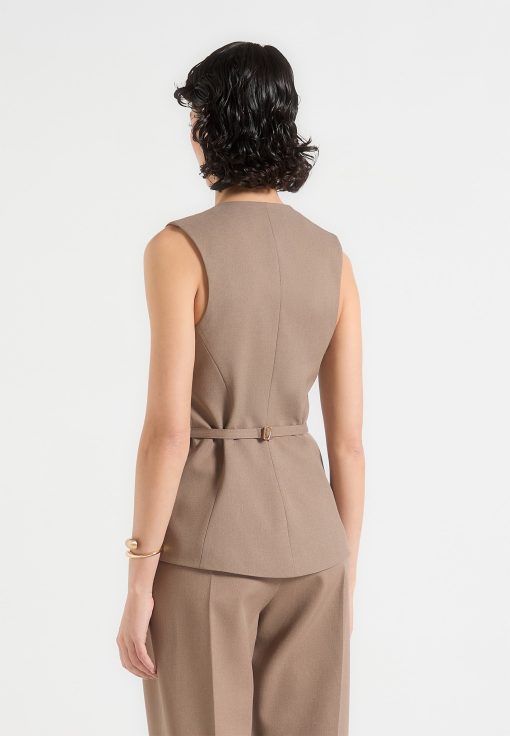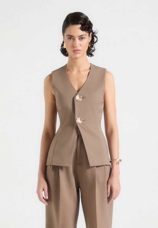 Manière De Voir Women’s Simone – Cinch Waistcoat With Oversized Buttons – Taupe | Taupe