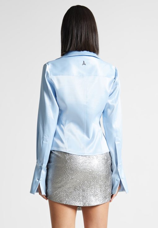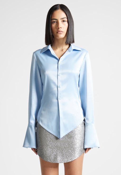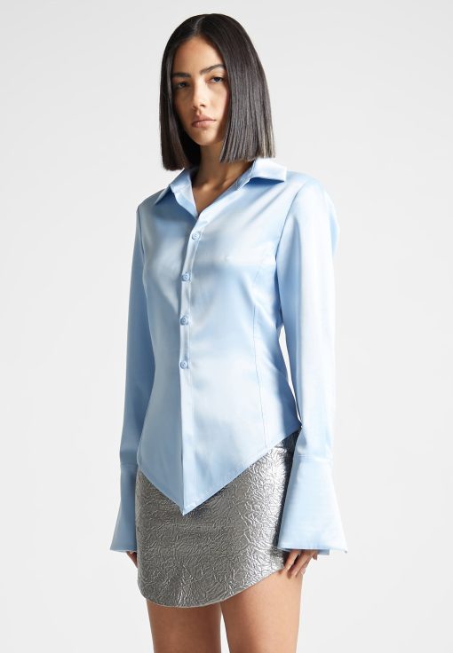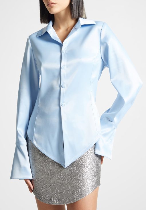 This Angled Satin Shirt is crafted from a soft touch fabric and tailored for a flattering fit. This timeless design offers the wearer superior comfort and a stylish silhouette. Perfect for special occasions or casual wear.