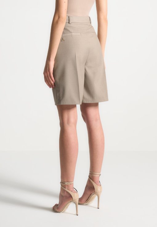 Expertly crafted with pleat detailing and a high-waisted design, our Tailored City Shorts are the perfect addition to any professional wardrobe. Elevate your style and stay comfortable all day with these sleek and sophisticated shorts.