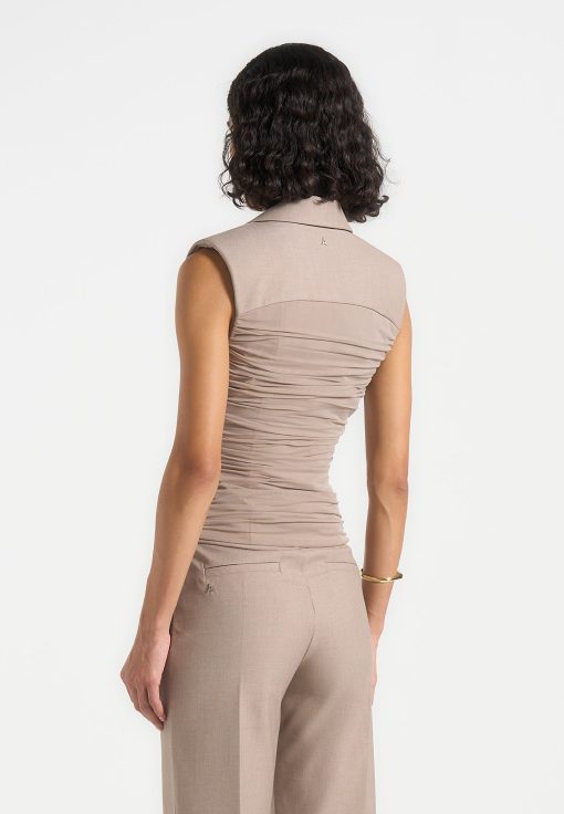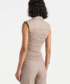 Manière De Voir Women’s Thea – Mesh Ruched Waistcoat – Mushroom