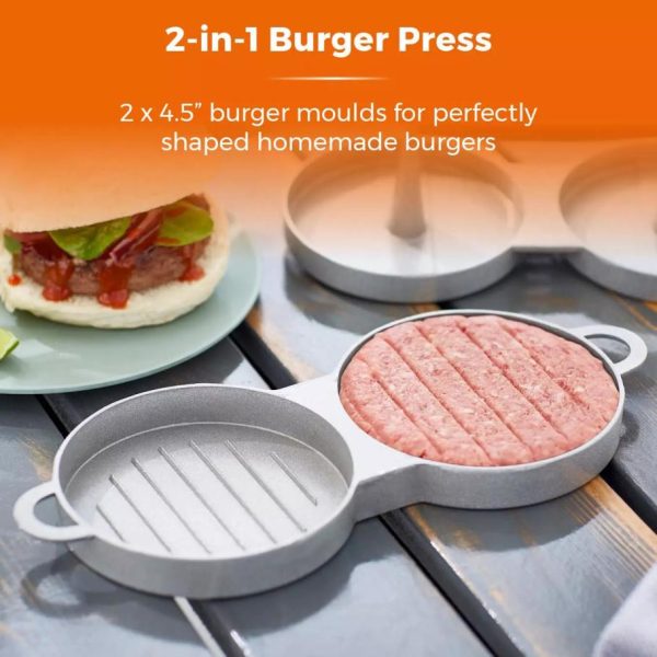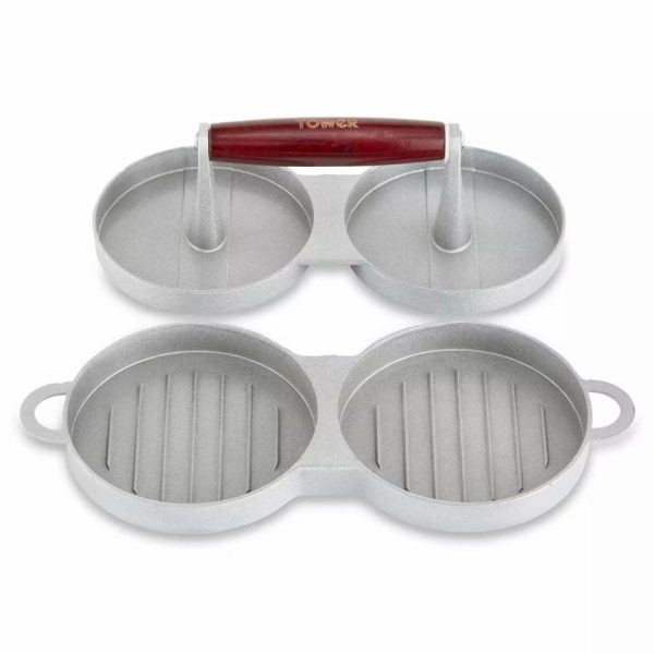 Tower Housewares Accessories | Homeware Double Burger Press With Wood Stainless Steel quantity