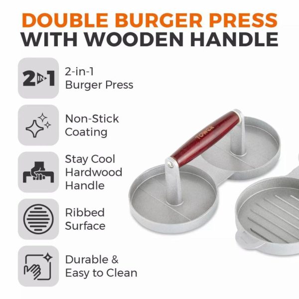 Tower Housewares Accessories | Homeware Double Burger Press With Wood Stainless Steel
