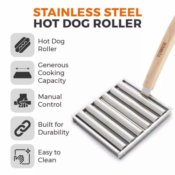 Tower Housewares Accessories | Homeware Hot Dog Roller With Wooden Handle Stainless Steel
