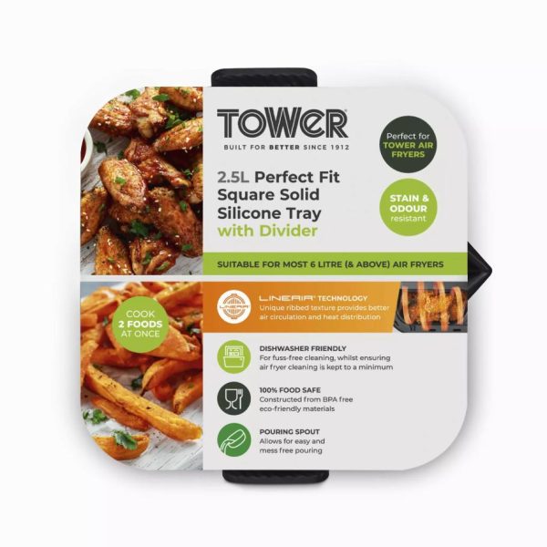Tower Housewares Air Fryer Accessories | Air Fryers Square Solid Silicone Tray With Divider Black