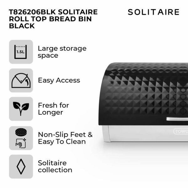 Tower Housewares Bread Bins | Homeware Cavaletto Bread Bin Black