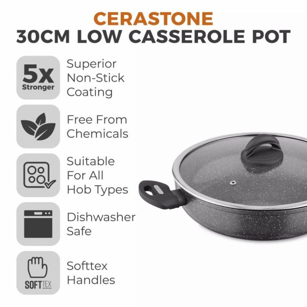 Tower Housewares Casserole Pots | Homeware Cerastone cm Low Casserole Graphite quantity