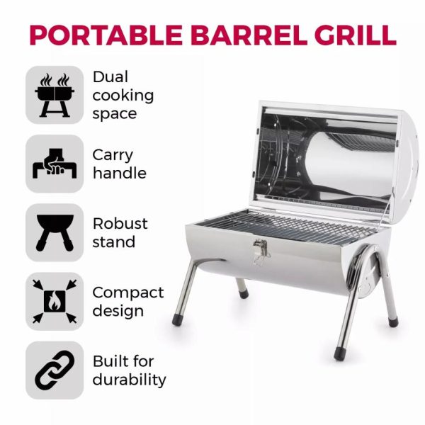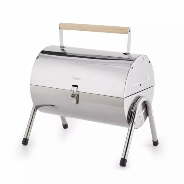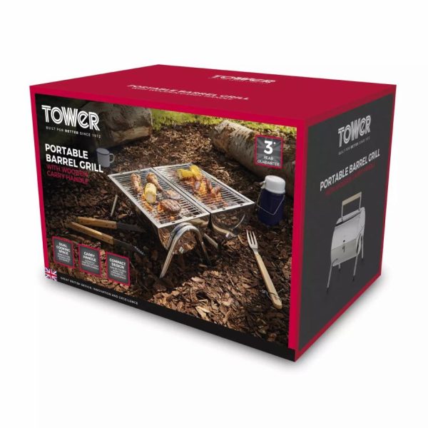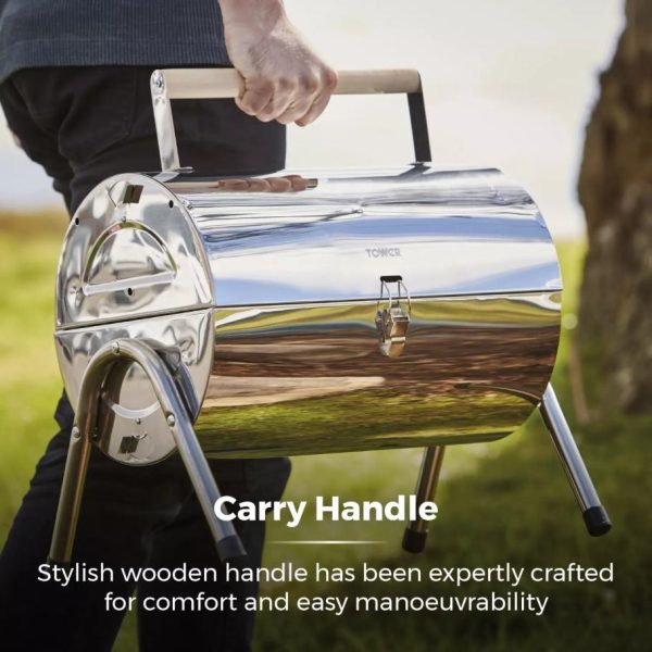 Tower Housewares Charcoal | Homeware Portable Barrel Grill With Wooden Carry Handle Black quantity