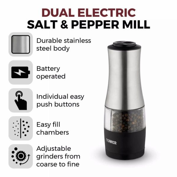 Tower Housewares Condiments | Homeware Dual Salt And Pepper Mill Stainless Steel Stainless Steel quantity