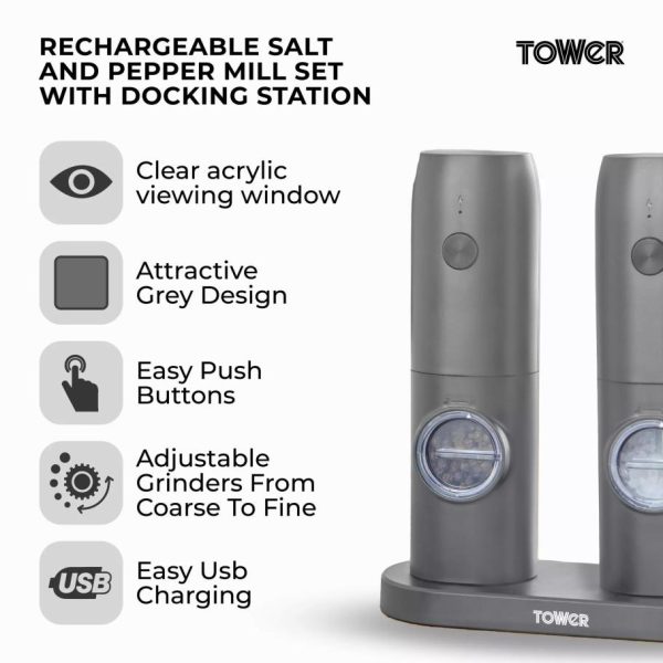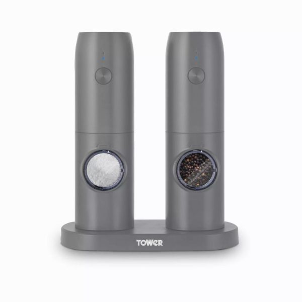 Tower Housewares Condiments | Homeware Rechargeable Salt & Pepper Mill Set Grey