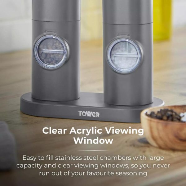 Tower Housewares Condiments | Homeware Rechargeable Salt & Pepper Mill Set Grey quantity
