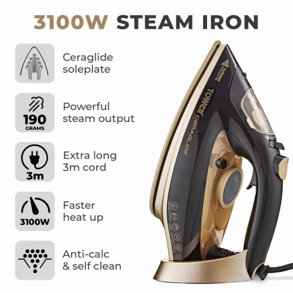 Tower Housewares Corded Irons | Homeware Ceraglide W Steam Iron Black