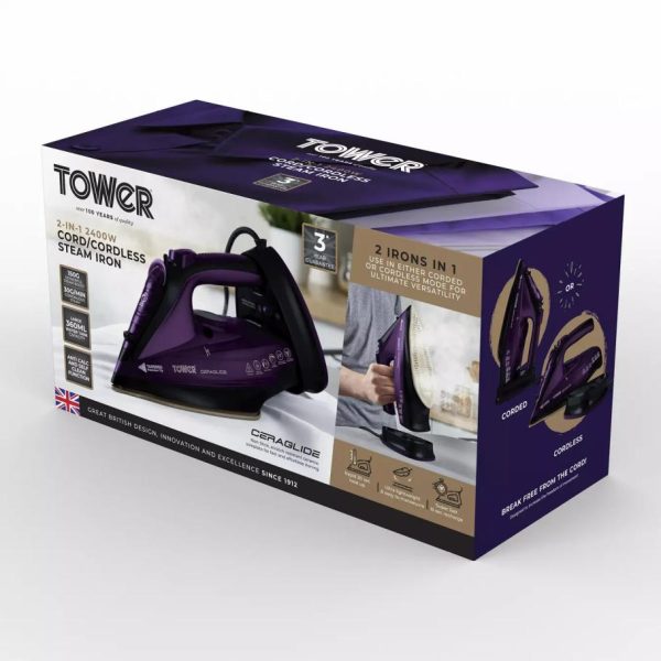 Tower Housewares Cordless Irons | Homeware Ceraglide Cord Cordless Iron Purple