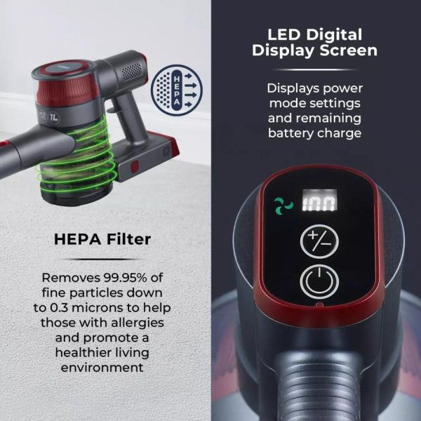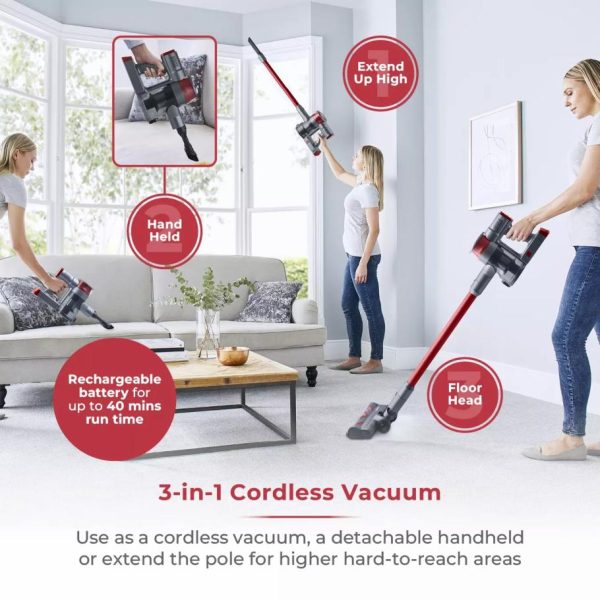 Tower Housewares Cordless Vacuum Cleaners | Floorcare VL -in- Evo Pets Cordless Vacuum Red