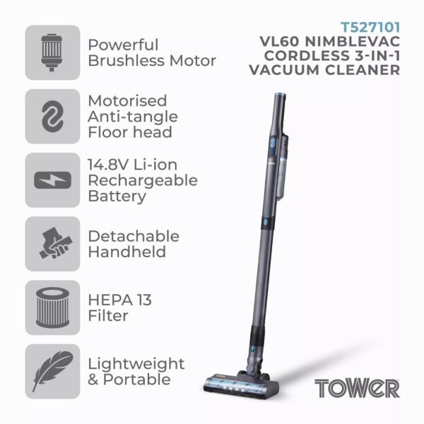 Tower Housewares Cordless Vacuum Cleaners | Floorcare VL NimbleVac Cordless Vacuum Black quantity