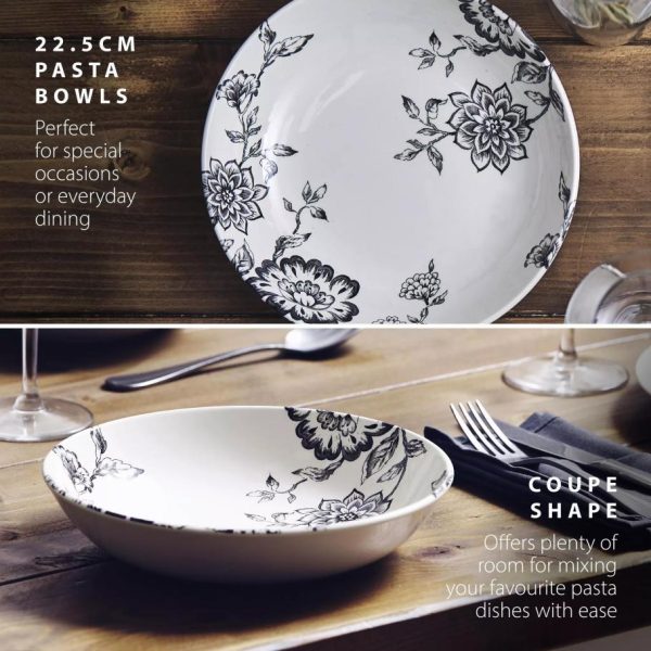Tower Housewares Dinnerware | Homeware Botanical Night Pasta Bowl Set Black quantity
