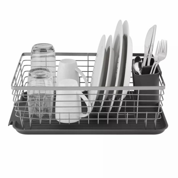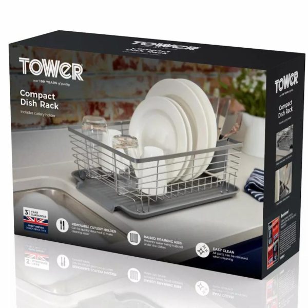 Tower Housewares Dish Racks & Drainers | Homeware Compact Dishrack With Cutlery Holder Grey quantity