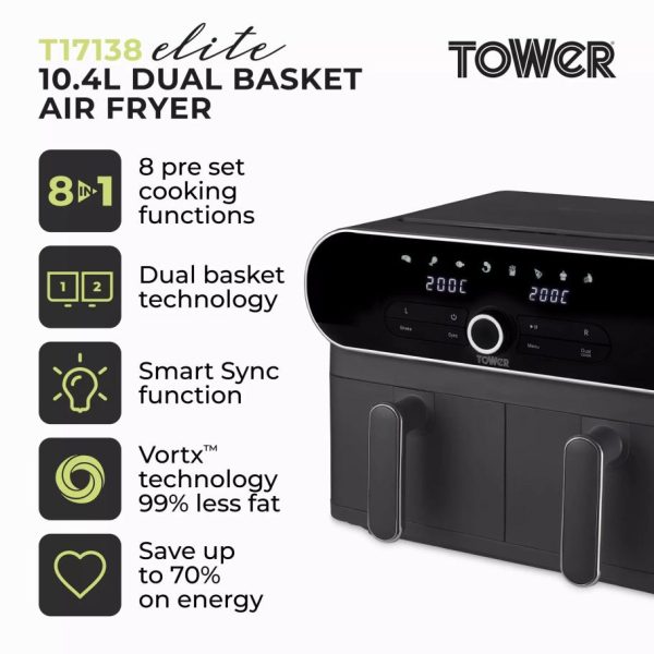 8 Presets: Steak/Drumsticks/Fish/Prawns/Fries/Pizza/Cake/Dehydrate