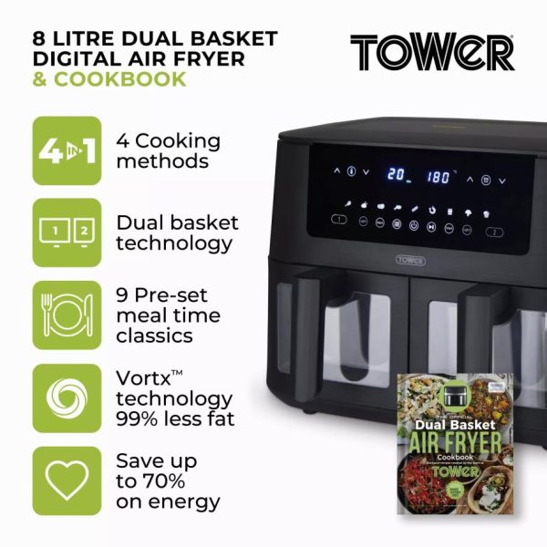 Tower Housewares Dual Basket Air Fryers | Air Fryers/Kitchen Vortx Vizion Litre Dual Basket Air Fryer T & Recipe Book None quantity