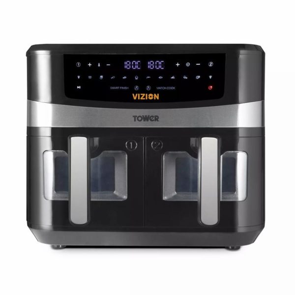 Tower Housewares Dual Basket Air Fryers | Air Fryers Vortx Vizion L Dual Basket Digital Air Fryer Black
